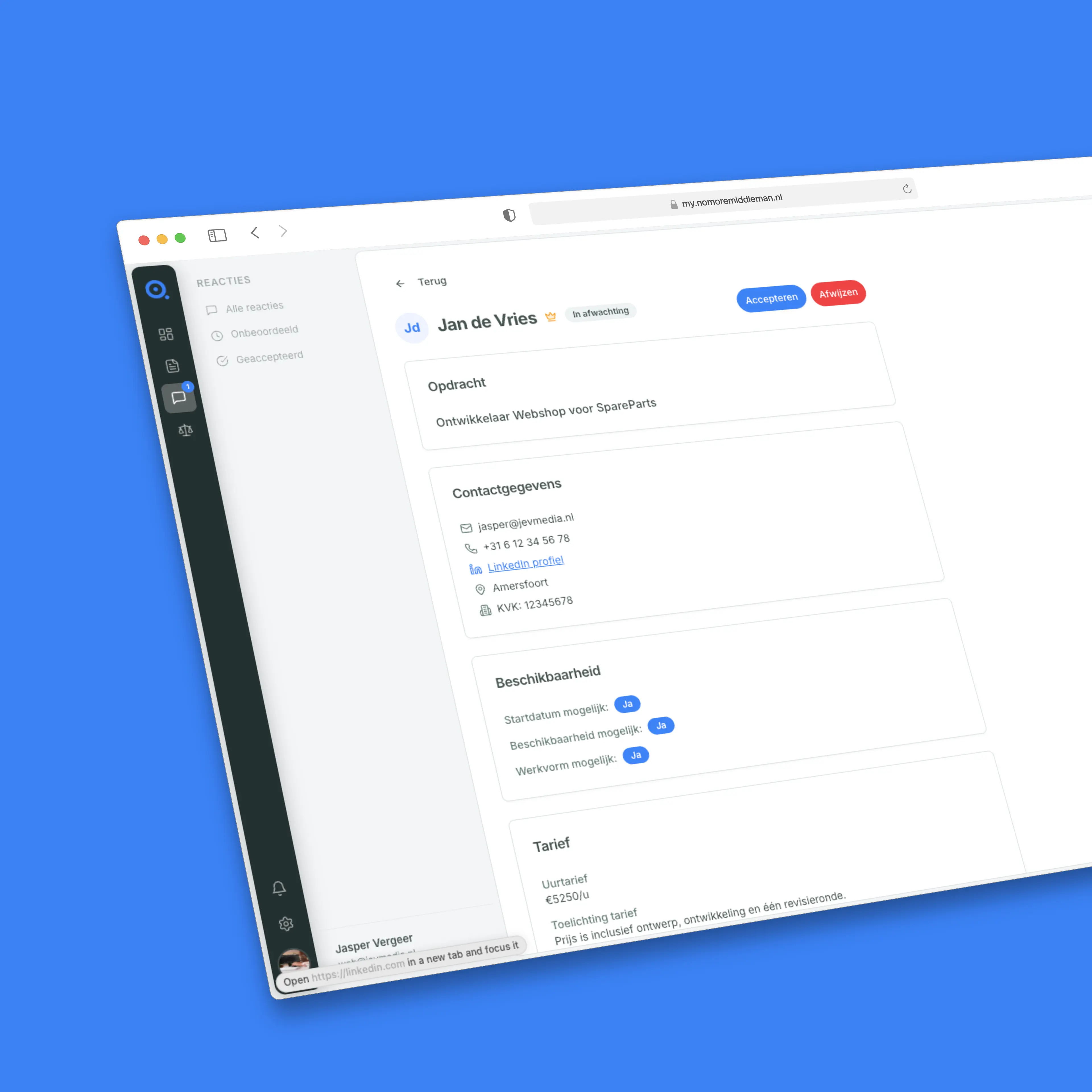 Je wilt een interim professional inhuren, maar je hebt geen zin om €20 per uur aan een bemiddelaar te betalen. Je wilt weten wie je inhuurt, direct kunnen schakelen, en niet afhankelijk zijn van een recruiter die je vak half begrijpt. Neem de controle terug — kies voor directe samenwerking via NoMoreMiddleMan.