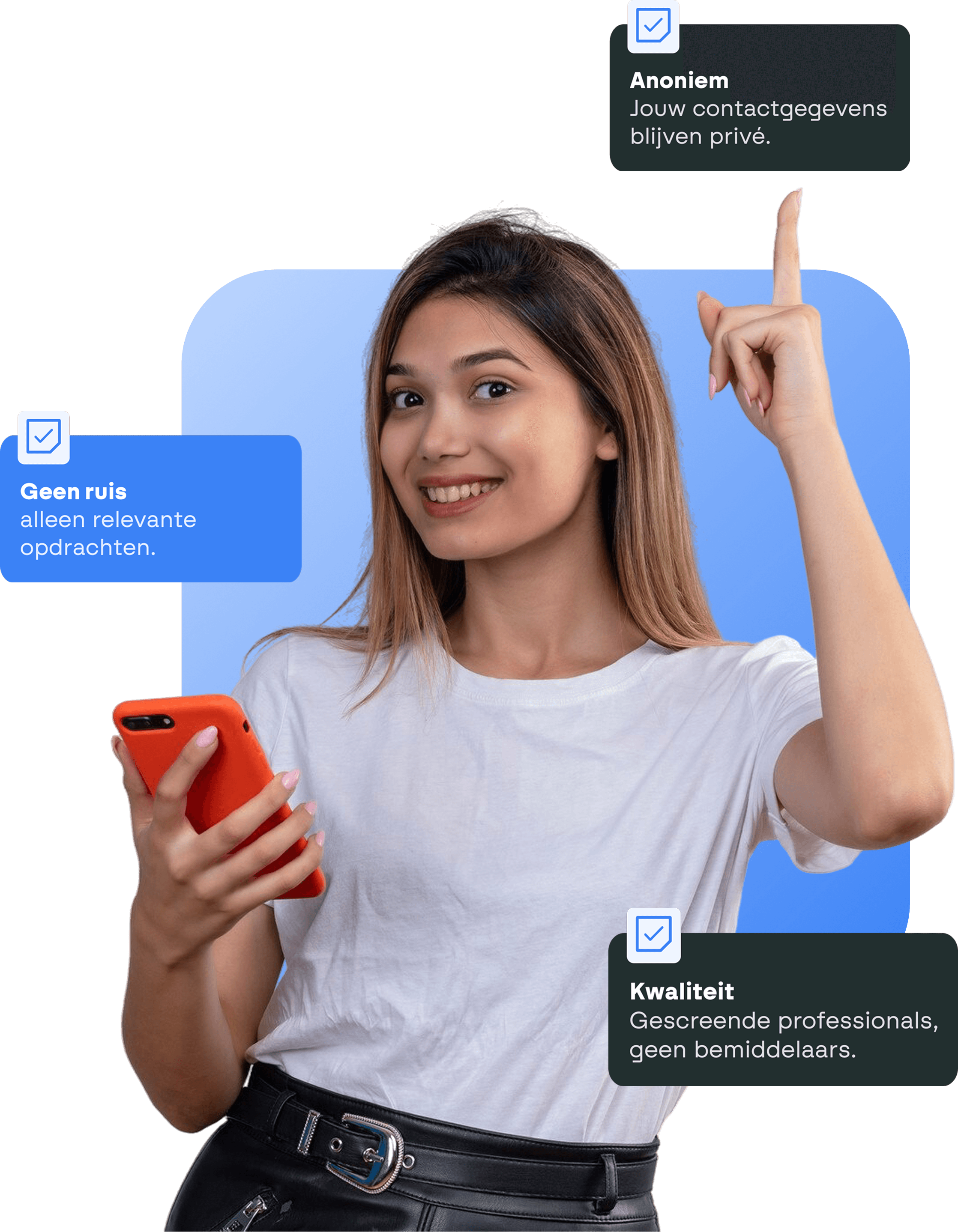 Elke professional op ons platform is KvK-gecreend. Geen bemiddelaars die zich voordoen als freelancer. Geen verborgen constructies. Gewoon directe samenwerking.