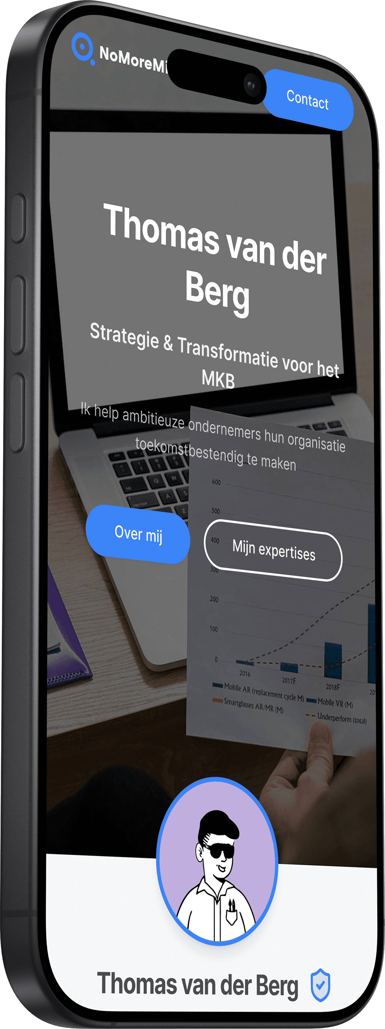 Heb jij nog geen eigen website als ZZP'er? Dat is wel verplicht volgens de wet DBA. Profiteer daarom van de vele extra's, zoals een professionele landingspagina om jezelf naar buiten toe te presenteren, ook buiten NoMoreMiddleMan om. Ook bieden we voorbeeld samenwerkingsovereenkomsten, DBA-toetsing en trainingen