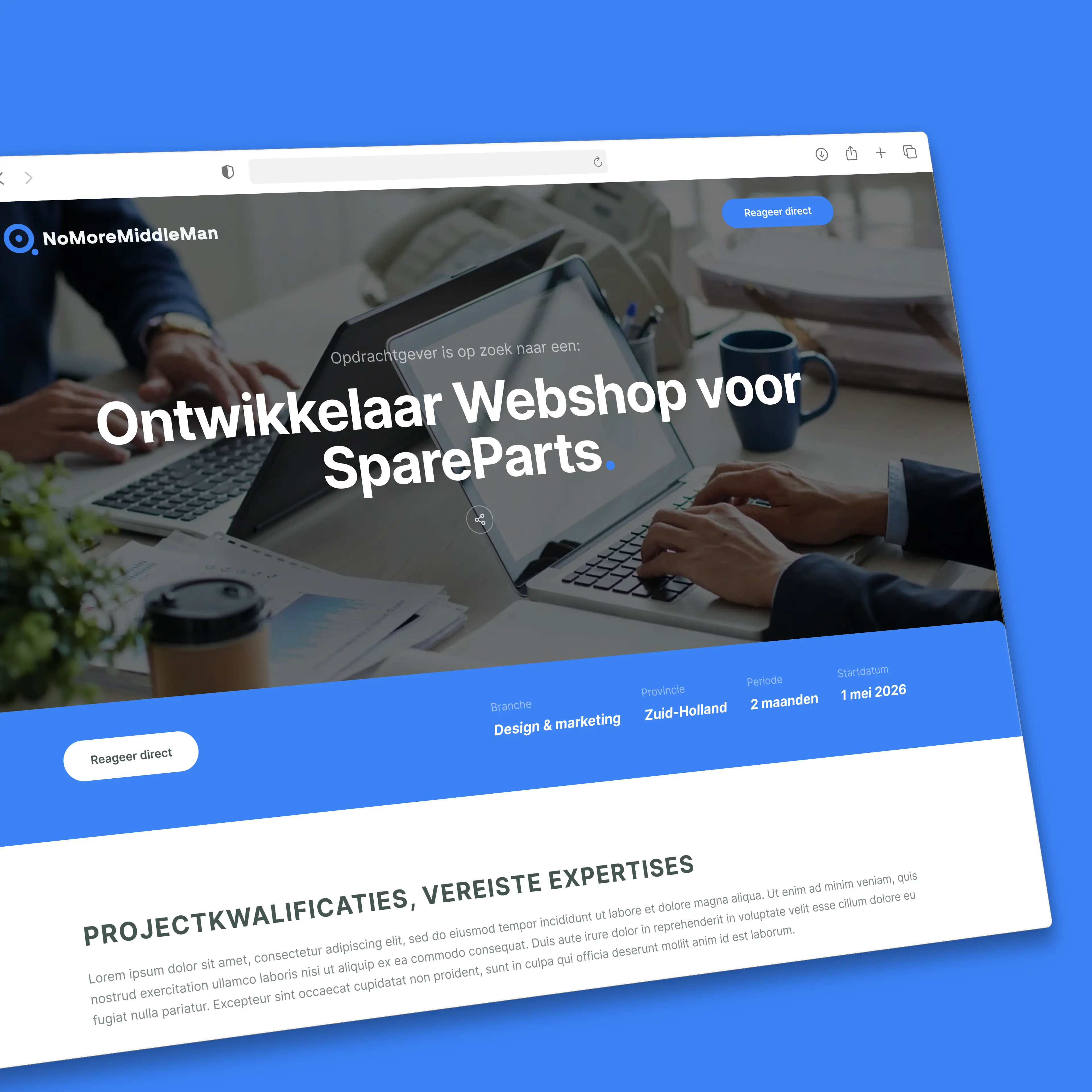 NoMoreMiddleMan biedt meer dan een platform voor Opdrachtgevers en Professionals om rechtstreeks in contact te komen voor mooie opdrachten.